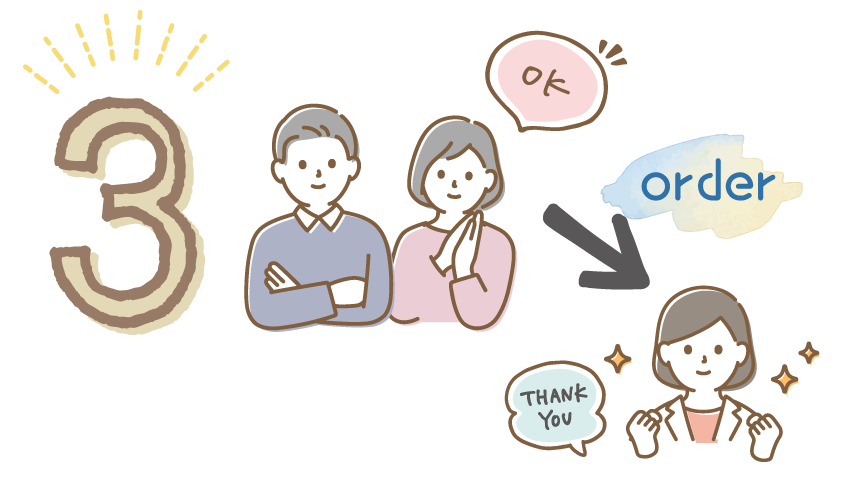 ご相談いただいた内容を元に、デザイン案を制作いたします。デザイン案・お見積り金額にご納得頂いた上で、安心してお申し込み頂けます。